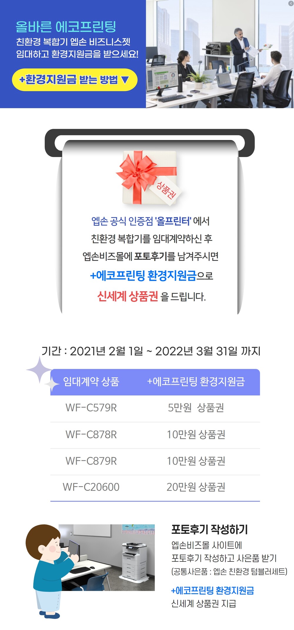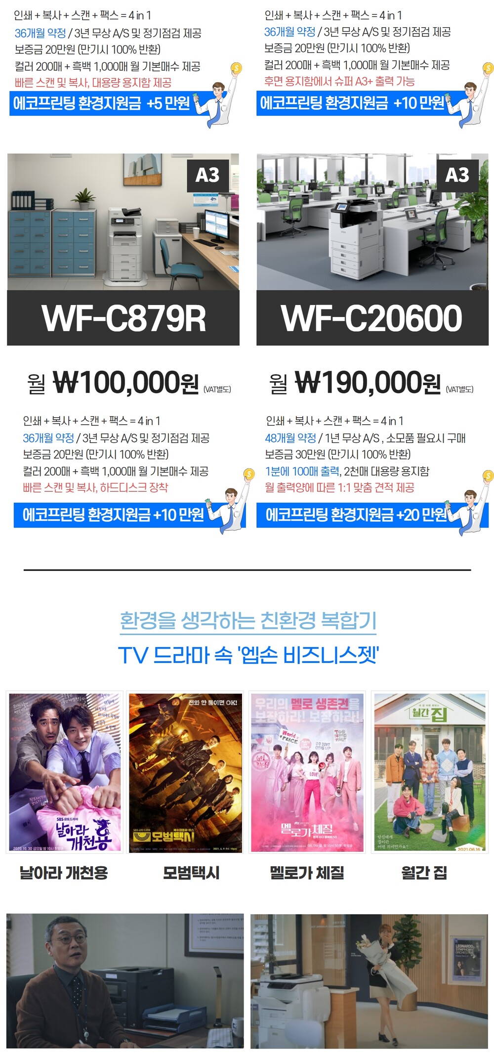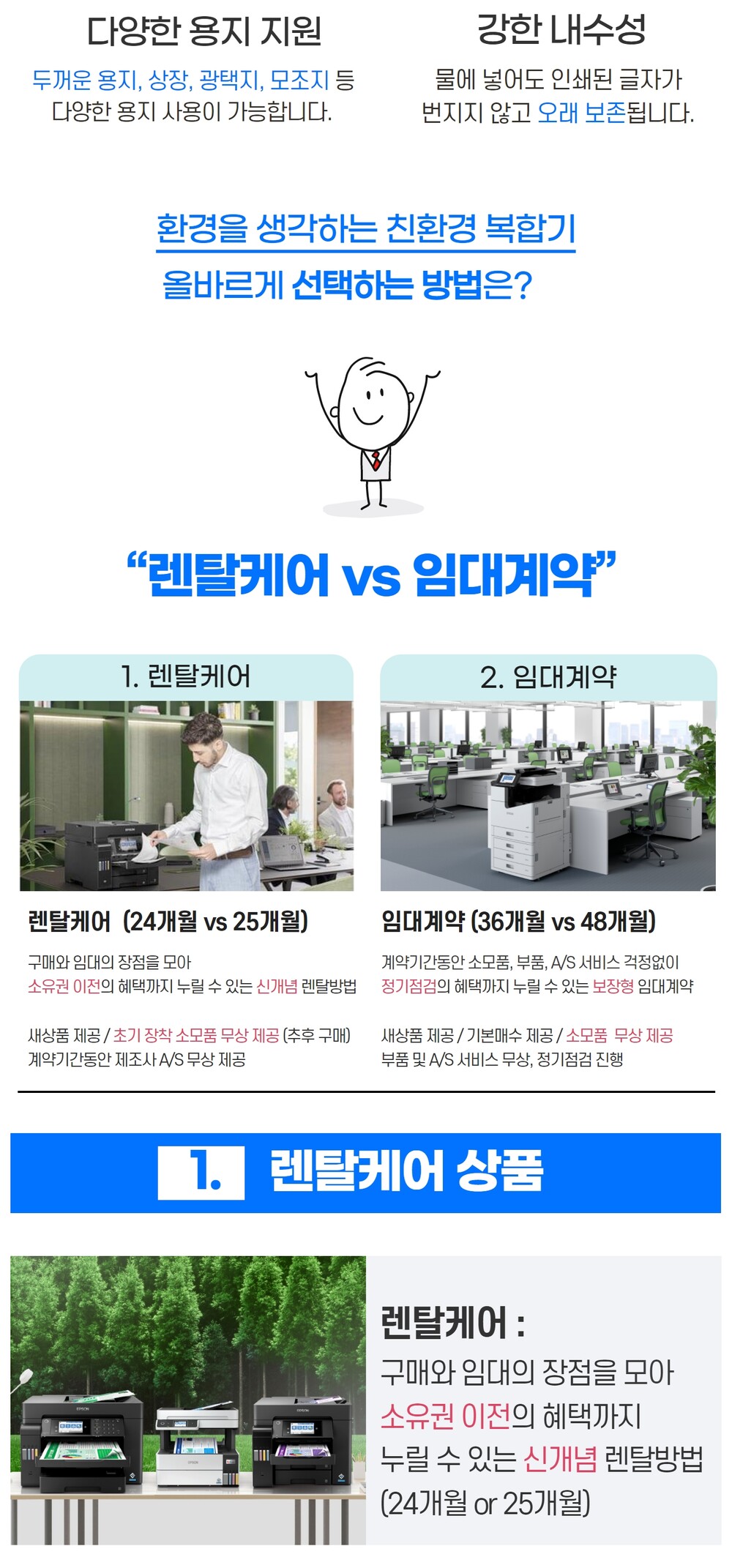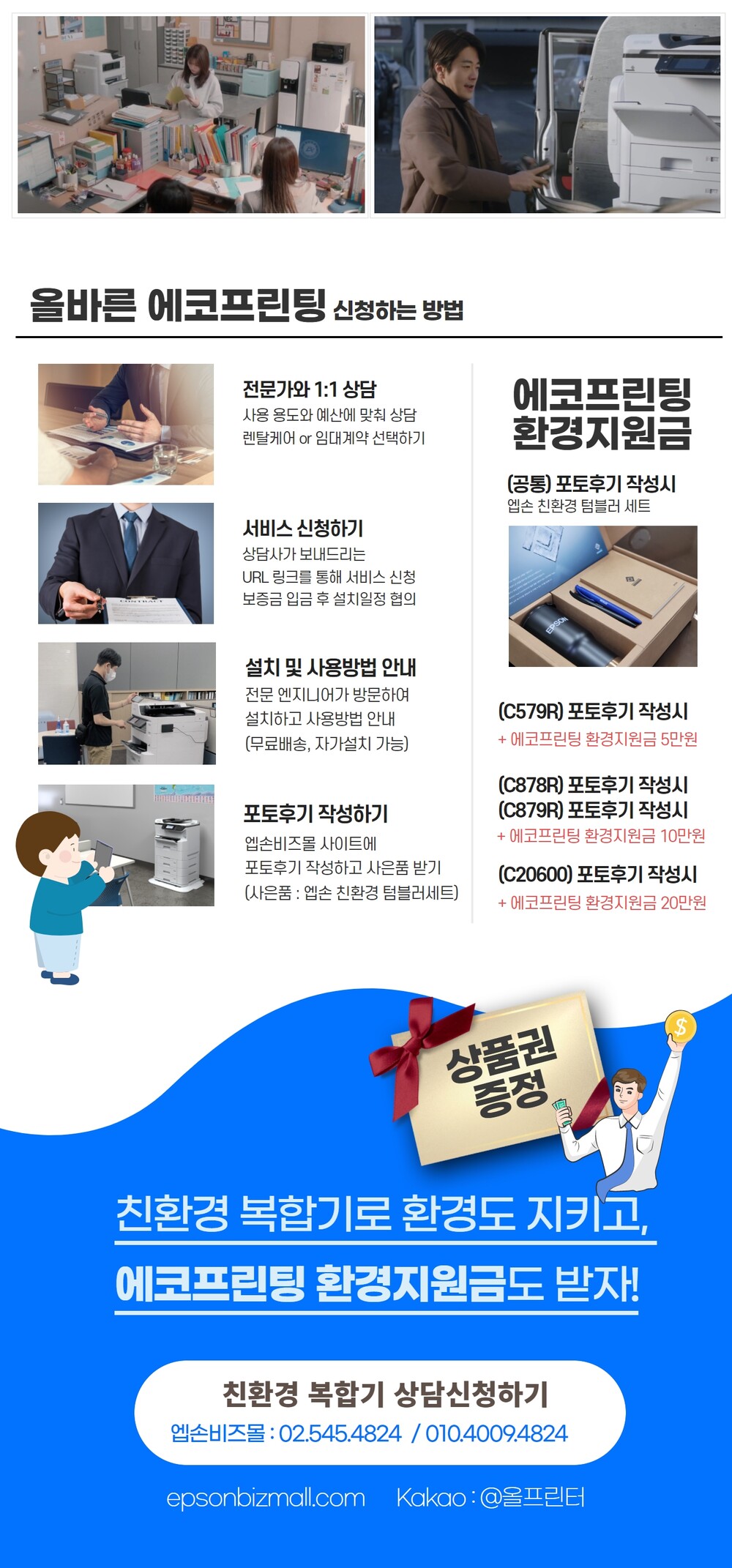 엡손 비즈니스젯 친환경 복합기로 임대계약하고
